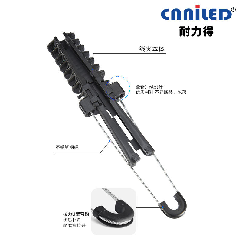 This combination provides outstanding mechanical strength and resistance against environmental stress such as wind, rain, and temperature fluctuations. These clamps are widely applied in low-voltage aerial bundled cable (ABC) systems, offering fast installation without the need for special tools. By securing cables firmly, dead-end clamps prevent slippage, extend service life, and improve overall network reliability.