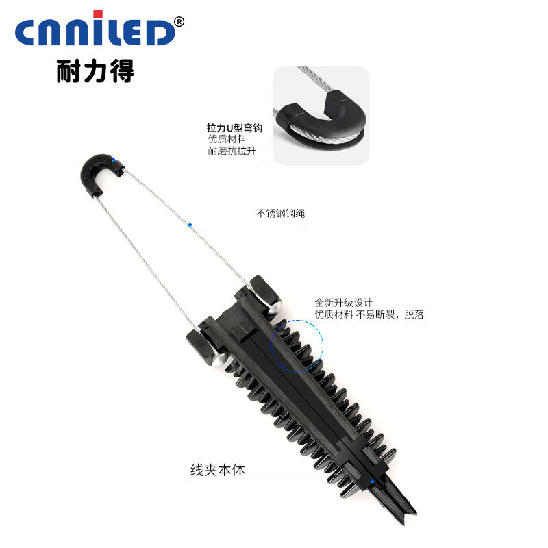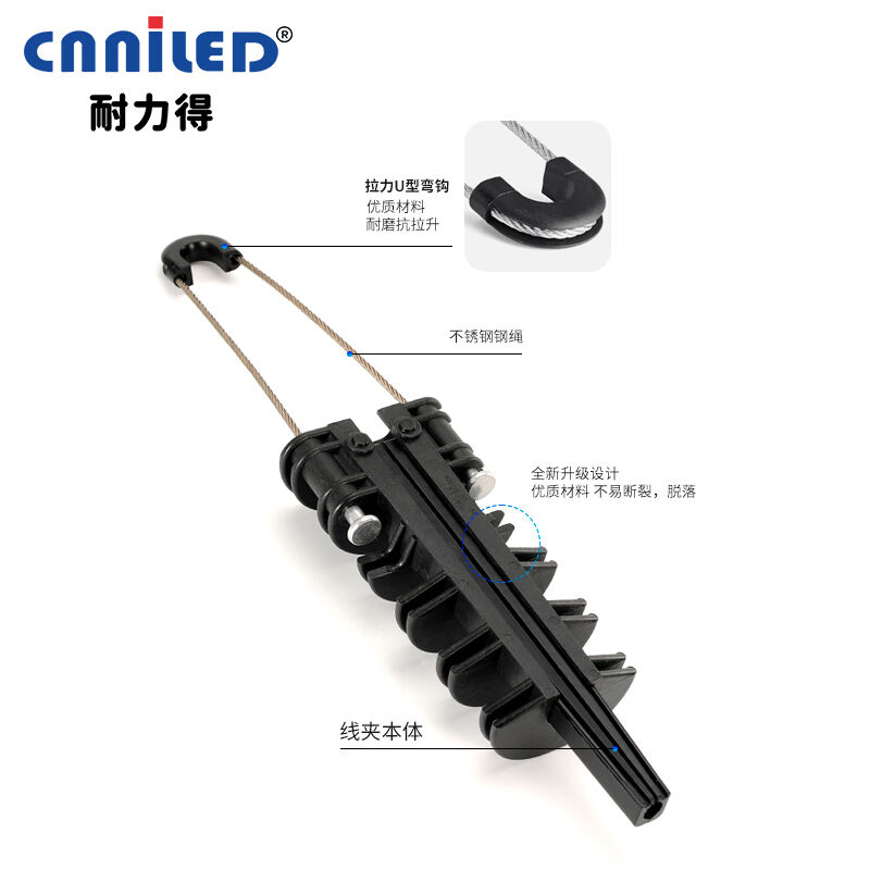 This combination provides outstanding mechanical strength and resistance against environmental stress such as wind, rain, and temperature fluctuations. These clamps are widely applied in low-voltage aerial bundled cable (ABC) systems, offering fast installation without the need for special tools. By securing cables firmly, dead-end clamps prevent slippage, extend service life, and improve overall network reliability.